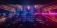 Lichtshow Noviter in het Philips Stadion tijdens Glow 2019. Deze kleurrijke show met lichtstralen en lasers kan een blijvende herinnering aan de muur worden.
