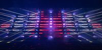 Lichtshow Noviter in het Philips Stadion tijdens Glow 2019. Deze kleurrijke show met lichtstralen en lasers kan een blijvende herinnering aan de muur worden.