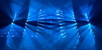 Lichtshow Noviter in het Philips Stadion tijdens Glow 2019. Deze kleurrijke show met lichtstralen en lasers kan een blijvende herinnering aan de muur worden.