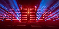 Lichtshow Noviter in het Philips Stadion tijdens Glow 2019. Deze kleurrijke show met lichtstralen en lasers kan een blijvende herinnering aan de muur worden.