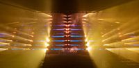 Lichtshow Noviter in het Philips Stadion tijdens Glow 2019. Deze kleurrijke show met lichtstralen en lasers kan een blijvende herinnering aan de muur worden.