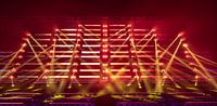 Lichtshow Noviter in het Philips Stadion tijdens Glow 2019. Deze kleurrijke show met lichtstralen en lasers kan een blijvende herinnering aan de muur worden.