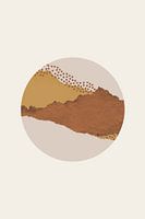 Dit abstracte schilderij geeft een gebergte weer tegen een nude achtergrond.