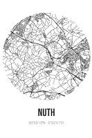 Zwart-witte landkaart, stratenplan of plattegrond van Nuth. Nuth is gelegen in de gemeente Beekdaelen, provincie Limburg. Op de stadskaart zijn alle openbare wegen in Nuth opgenomen. Verder is de kaart voorzien van de coördinaten van het centrum van Nuth.