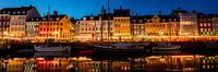 Nyhavn in Kopenhagen, panorama tijdens het blauwe uurtje.