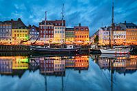 Nyhavn in Kopenhagen, Denemarken bij nacht
