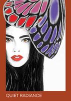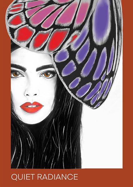 Wat jij in dit portret ziet, is het belangrijkst. Misschien wordt je blik direct gevangen door de vlinder die als een beschermende vorm over het hoofd ligt — een symbool van kwetsbaarheid én kracht. Misschien zijn het de warme ogen die je aankijken, of het contrast tussen het zachte gezicht en de uitgesproken grafische vleugels. Of…
