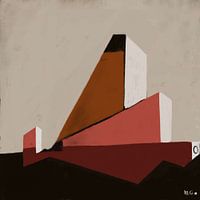 Het is abstract en verwijst naar moderniteit in architectuur en industrialisatie. Strak en efficient.