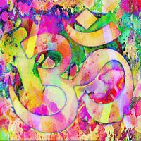 Stralen komen uit de hemel die de mantra 'OM' verlichten. Een mantra is een zin of woord gebruikt voor meditatie en chanten die verder werken dan het niveau van alleen de woorden die worden gebruikt. OM is de kleinste mantra, maar zou de essentie en het geluid van het universum bevatten. Het verschijnt aan het begin en einde van de meeste Sanskriet gebeden, recitaties en teksten omdat het je in focus brengt en je aardt.
