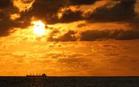Een vrachtschip trekt aan de horizon voorbij op de Atlantische Oceaan tussen Gran Canaria en Tenerife. [EOS1dMrkIV|1/500s + 280mm|f10]