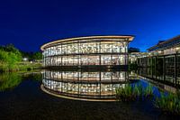 Bibliotheek van de Technische Universiteit van Oost-Beieren in Regensburg tijdens het blauwe uur.
