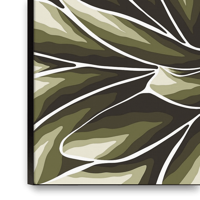 Dit kunstwerk is geïnspireerd door de woestijn en verschillende planten. Gebaseerd op de bladeren van een vetplant en cactus. Verkrijgbaar in meerdere kleuren. Deze versie bestaat uit groene bladeren op een witte achtergrond.