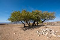 In de warmte en droogte een rustplaats voor de eenzame herder en zijn kudde