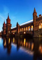 Oberbaumbrücke in Berlijn tussen de wijken Kreuzberg en Friedrichshain - hier met een metro op het blauwe uur.
