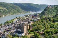 Gezicht op Oberwesel met de parochiekerk van Sint-Maarten, de Onze-Lieve-Vrouwekerk, kasteel Schönburg en de rivier de Rijn, werelderfgoed Oberwesel, Rijnland-Palts, Duitsland | Arial uitzicht op Oberwesel met de parochiekerk van Sint-Maarten, de Onze-Lieve-Vrouwekerk, kasteel Schönburg en de rivier de Rijn, werelderfgoed Oberwesel, Rijnland-Palts, Duitsland