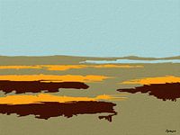 (Kunst)werk met als onderwerp landschap, water, zeeën en oceanen. Digitale kunst. Minimalistisch.
