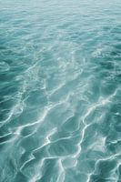 Een hypnotiserende close-up van golvend turquoise zeewater, waarbij het spel van licht en beweging een betoverend patroon creëert. De zachte rimpelingen vormen organische lijnen die als vloeiend zilver door het aquamarijnblauwe water dansen, wat resulteert in een meditatief en kalmerend beeld dat de pure essentie van water vangt.