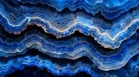 De kunstenaar heeft de rijke gelaagdheid en textuur van agaatstenen met ongekende precisie en diepte geïllustreerd. De verschillende tinten blauw, van licht tot donker, gecombineerd met de natuurlijke witte en beige accenten, creëren een visueel spektakel dat doet denken aan de diepe en mysterieuze oceaan of de serene schoonheid van een nachtelijke hemel. Elke laag lijkt zijn eigen verhaal te vertellen, een stille getuige van de tijd en natuurlijke processen die het hebben gevormd. De subtiele overgangen tussen de lagen en de delicate details nodigen de kijker uit om dichterbij te komen en zich te verdiepen in de complexiteit en schoonheid van de natuur.