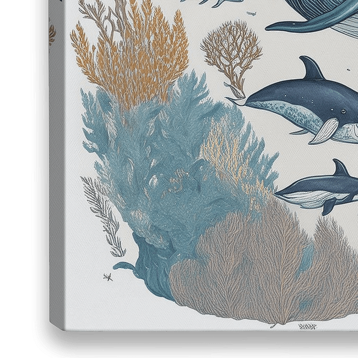 Onderwaterwereld illlustratie met walvissen, dolfijnen, koralen, koraal en vissen.