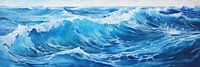 Oceaan - We zien een dynamische weergave van golvend water, rijk in verschillende blauwtinten met accenten van wit schuim. Het schilderij biedt een gevoel van beweging en kracht, en de gedetailleerde kwaststreken creëren een bijna fotorealistische impressie van de oceaan.
