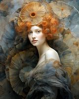 Abstract portret van een vrouw gehuld in tule.