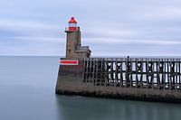 De kleine vuurtoren op de havenpier van Fécamp ziet er prachtig pittoresk uit, vooral vanwege de houten constructie, die al erg oud is en veel stormen heeft meegemaakt.