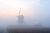 Ochtend mist aan de Tissenhovemolen te Brakel smorgens vroeg op een mooie lente dag