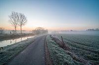 Vroeg op een ijzige ochtend met mist loopt dit fiets- en voetpad langs de Dender te Geraardsbergen