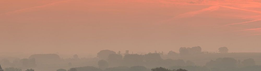 Op een zonnige ochtend in september staat deze prachtige Rozebeke kerk in de mist met opkomende zon.