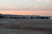 De ochtend brak aan op het strand van Zoutelande,aan de horizon waren de duinen te zien met een prachtig gekleurde lucht.