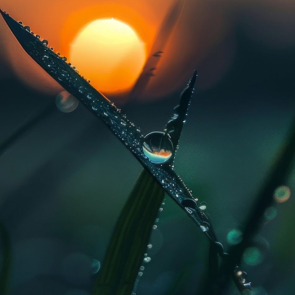 Dit adembenemende kunstwerk vangt de magie van een zonsopgang in de natuur. Een dauwdruppel hangend aan een grasspriet reflecteert de eerste lichtstralen van de opkomende zon. De warme, gouden belichting en zachte bokeh-effecten geven de foto een rustgevende en romantische sfeer. Ideaal voor natuurliefhebbers die de schoonheid van de ochtend waarderen en deze vredige sfeer in huis willen halen. Perfect voor woon- en slaapkamers om een vleugje natuur en rust toe te voegen.