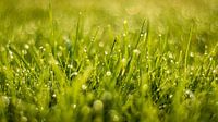 Deze sfeervolle foto toont een groene weide op een mooie zomerochtend.