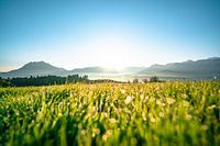 Ochtenddauw met uitzicht op de Grünten en de Allgäuer Alpen