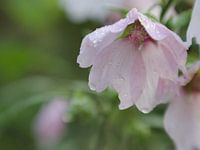 De Lavatera 's ochtends vroeg, met dauwdruppels.