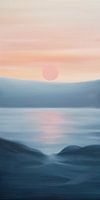 'Ochtendgloren Harmonie' is een schilderij dat de essentie van een vroege ochtend aan zee vangt, met de zon die zich als een zachte gloed boven de horizon verheft. De reflectie op het water creëert een pad van licht tussen de donkere contouren van de duinen, wat de toeschouwer uitnodigt tot een moment van rust en contemplatie. Dit beeld brengt een gevoel van hoop en een nieuw begin, terwijl het een vredige start van de dag belooft.