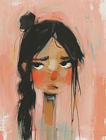 Super leuke en grappige illustratie van een meisje met ochtendhumeur in terracotta.