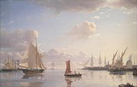 Uitzicht vanuit Langelinie naar de Koninklijke Marine Dockyards in Nyholm, Kopenhagen. Ochtendlicht (1850), Emanuel Larsen