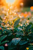 De zachte, glinsterende druppels op de groene bladeren vangen het licht van de opkomende zon en geven het tafereel een poëtische frisheid. Dit levendige natuurlijke schouwspel brengt harmonie en vitaliteit in elke woonkamer, als een oase van rust in de drukte van alledag. Eén blik en je ziel bloeit op!