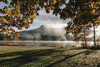 Vroeg opstaan in de zomer loont zich vaak! Het warme water staat zijn warmte af aan de lucht waardoor er een mooie nevel boven het meertje hangt. In de achtergrond is de Kitzbüheler Horn te zien.