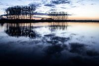 Ochtendreflectie tijdens het blauwe uurtje op het water van kreek Zestig Voet nabij Clinge (Hulst/Zeeuws-Vlaanderen)