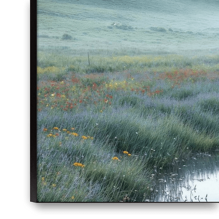 In dit betoverende landschap smelten hemel en aarde samen in een zachte symfonie van kleur en licht. Een delicate vallei strekt zich uit tussen zacht glooiende heuvels die oplichten in het eerste licht van de dag. Een fijne sluier van mist ligt over de weiden, dompelt de scène onder in een mystieke stilte en verleent de vallei een bijna…