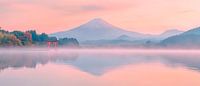 Een zachte ochtend ontwaakt in delicate pastelkleuren, terwijl een majestueuze berg uittorent boven glinsterend water. De mystieke mist creëert een rustige sfeer die de kijker meeneemt naar een vredige wereld. Ideaal voor in de woonkamer, waar het harmonieuze ontmoetingen en ontspannen gesprekken stimuleert.
