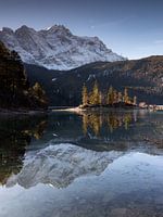 Ochtendstemming bij Eibsee met reflectie van de Zugspitze