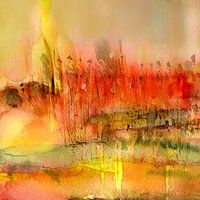 Het schilderen, Aquarel, Licht, Eigentijds, Modern, Decoratief, Abstract, Impressie, Rust, Aard, Zacht, Landschap, Warm, Stilte, Ontspanning, Kleurrijk, Stemming, Licht, Heuvel, Hemel, Kunst, Grassen