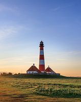 Stilte en harmonie in het eerste ochtendlicht bij Westerheversand Lighthouse.