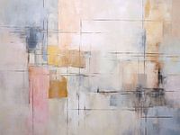 "Morning Walk" is een sereen en sfeervol abstract schilderij dat de kalme essentie van een rustig ontwakende ochtend weergeeft. Het kleurenpalet, gedomineerd door rustige grijstinten, beige en zacht roze, weerspiegelt de subtiele tinten van de dageraad als de wereld tot bewustzijn komt.