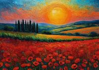 Koop dit schilderij Ochtendzon in Toscane met rode klaprozen 2 van MIROKKU als reproductie op canvas, aluminium dibond, (ingelijste) fotoprint, behang en ArtFrame, op maat geprint in Fine-Art kwaliteit.