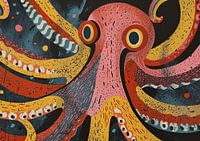 Details: inktvis, abstract, modern, tentakels, ogen, zee, kunst, zwart, rood, geel