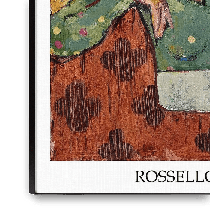 "Odalisque met zwarte kat" toont een rustig, magnetisch moment: een vrouw die met natuurlijk zelfvertrouwen achterover leunt terwijl een zwarte kat - alert, elegant, bijna mystiek - het tafereel bewaakt. De penseelvoering is expressief en getextureerd, waardoor alles een doorleefde warmte krijgt. Patronen overlappen elkaar, stoffen…