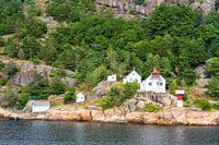 De vuurtoren van Odderøya Fyr bij Kristiansand in Noorwegen.